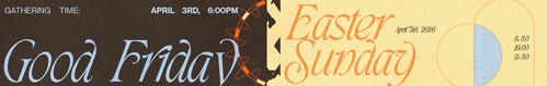 Our Good Friday gathering will be an hour, and our Easter Sunday gatherings will be approximately 50 minutes.
